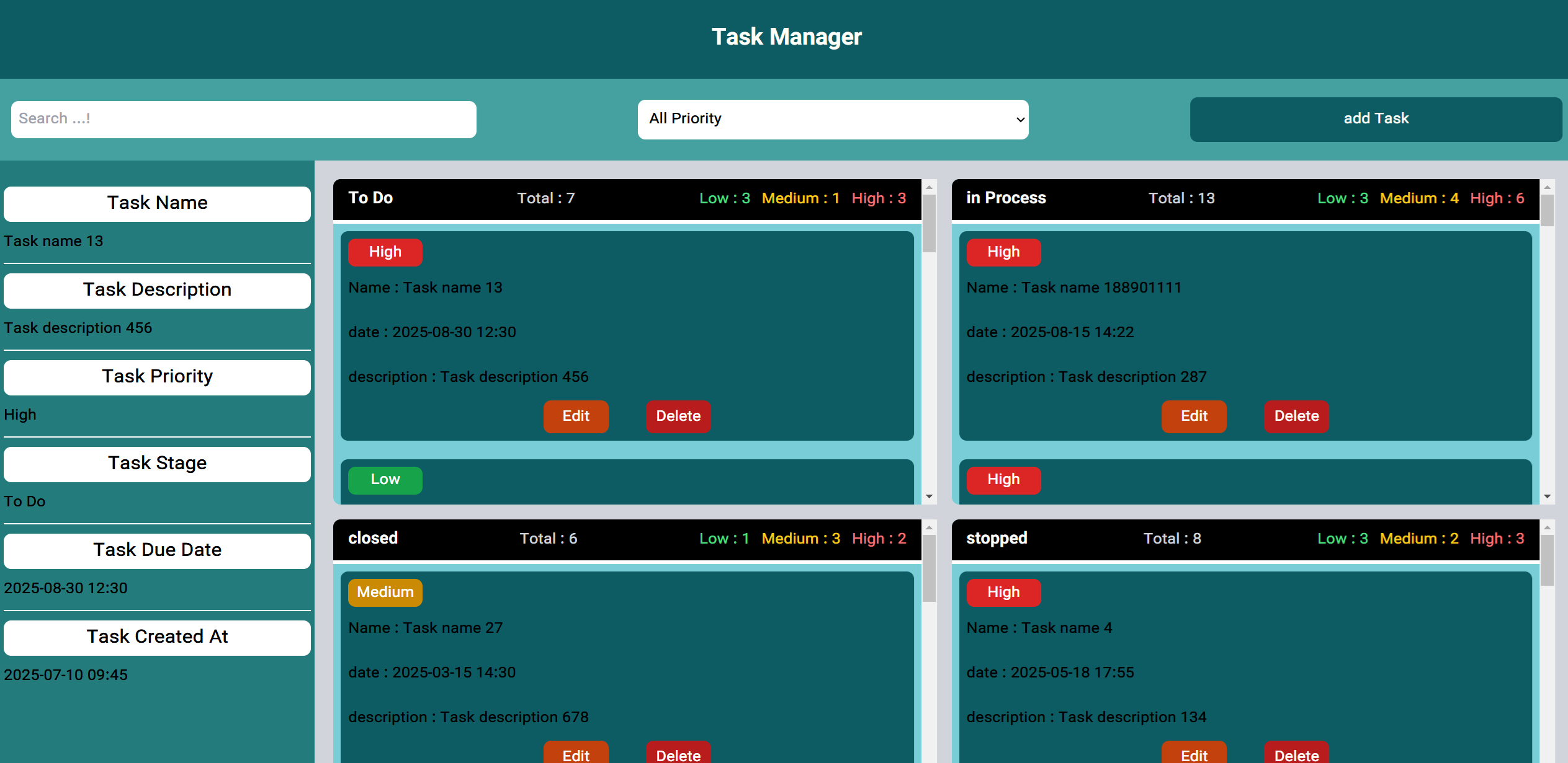 Task ManagerWeb task manager using JS: add/edit/search tasks, priority filters, and progress charts.HTMLTailwind CSSJavaScriptDemoGitHub